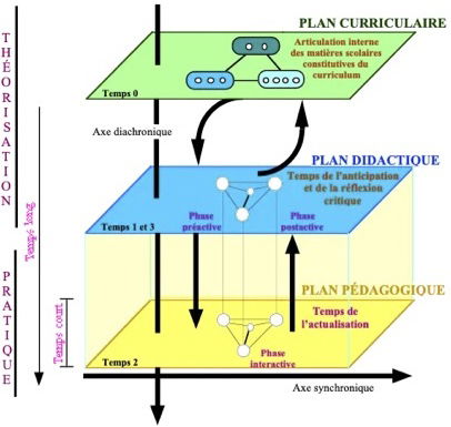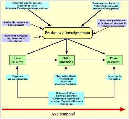 dimensions observables qui tiennent compte à la fois du discours des enseignants (leurs représentations) et de leurs pratiques effectives (leur agir en classe) : les dimensions contextuelles, historiques, socioculturelles, épistémologiques, curriculaires, didactiques, médiatrices, psychopédagogiques, psychoaffectives, organisationnelles, morales et éthiques soutenant les dimensions opératoires et insérées sur un axe temporel.