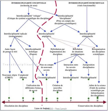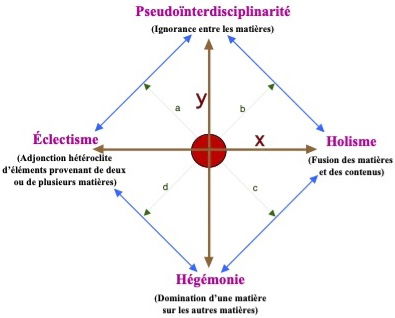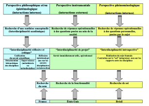 Deuxièmement, la recension critique de la documentation scientifique sur l’interdisciplinarité l’a conduit à identifier différents types d’interdisciplinarité en fonction du rapport au savoir disciplinaire, aux visées sociales et de la conception épistémologique des rapports interdisciplinaires.