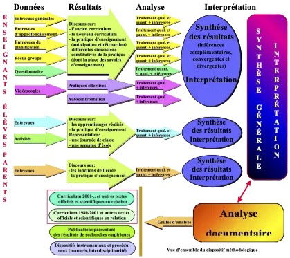 Les dispositifs auxquels il recourt font appel à la fois à des analyses documentaires, à des entrevues individuelles et de groupe, à des questionnaires et à des vidéoscopies des pratiques en classe. Ces dernières sont réalisées à distance grâce à un dispositif technique innovateur financé par le Fonds des leaders de la Fondation canadienne pour l’innovation (FCI), dispositif qui évitait tout effet perturbateur en classe.