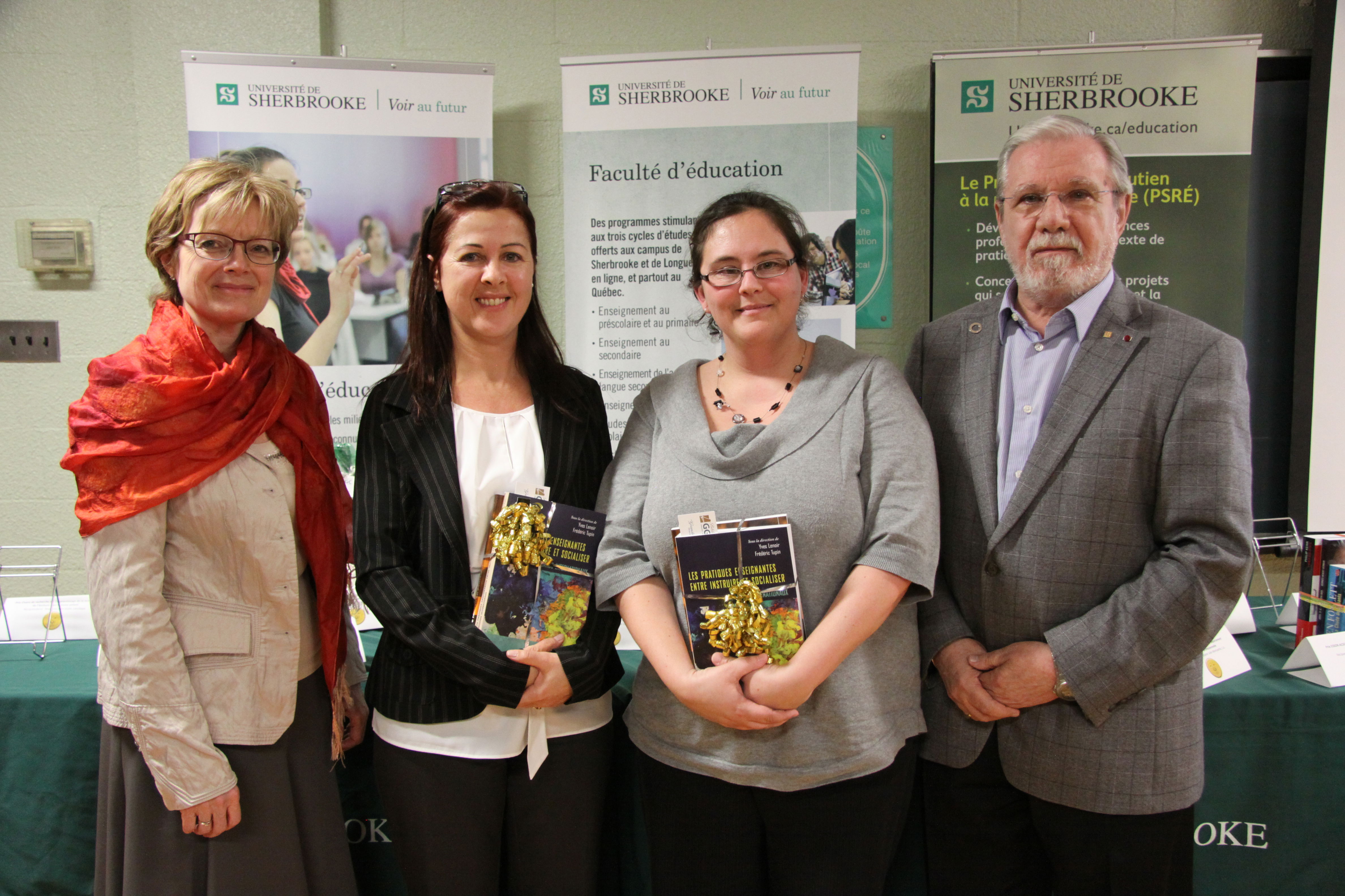 Cette conception se fondait sur quatre grands principes : a) intégrer les étudiants aux travaux des équipes à titre de participants à part entière ; b) les former aux normes et aux exigences intellectuelles, professionnelles et éthiques de la recherche scientifique individuelle et surtout collective ; c) les insérer dans des réseaux de chercheurs productifs, les mettre en contact direct avec les nécessités de la production intellectuelle, notamment par le biais de l’écriture, de la participation aux revues scientifiques et à des événements scientifiques ; d) leur inculquer la nécessité de s’inscrire dans un processus d’autoformation continue reposant sur la mise en œuvre d’un esprit curieux, rigoureux, réflexif et critique [89], et sur le développement de cadres conceptuels et de dispositifs méthodologiques solidement structurés. Dans ce sens, la recherche est ainsi conçue comme un processus de production de nouveaux savoirs et comme un processus de formation pour ceux et celles qui y participent. C’est dans cet esprit et à partir de ces quatre principes que se sont tenues de nombreuses activités de formation mises en œuvre depuis 1993 : un encadrement rigoureux et systématique en équipe ; un cycle annuel de conférences prononcées par des chercheurs de renom provenant de divers pays ; des séminaires permettant aux membres étudiants de présenter leurs travaux en l’état et de les soumettre à la critique constructive ; l’introduction de débats, de journées internationales d’étude sur des objets reliés aux pratiques d’enseignement, d’ateliers de formation ; la participation à des événements tenus au Canada et à l’étranger ; etc. À côté des bourses et des salaires d’assistanat que le Pr Lenoir allouait aux étudiants qu’il dirigeait, il a créé deux prix : en 2001, un prix annuel “Yves Lenoir des Éditions du CRP” consistant en une bourse d’études financée à partir des profits – non réclamés par l’auteur – de la vente de ses livres ; de 2009 à 2015, le prix “Chaire de recherche du Canada sur l’intervention éducative-Biblairie GGC” consistant en des livres remis aux récipiendaires poursuivant des études graduées pour leur engagement dans les travaux de la CRCIE et l’excellence de leurs travaux de recherche sur les pratiques d’enseignement.